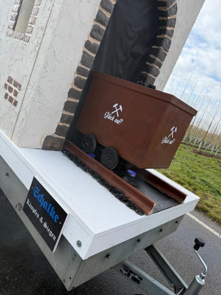 Zwischen bunten Kamellen, der Prinzessin und Konfetti zog plötzlich ein Hauch Ruhrpott durch die Straßen. Unsere Lore rollte an, fuhr in den angedeuteten Stollen ein, Licht und Nebel sorgten für staunende Gesichter aber das Wichtigste war nicht nur der Wagen. Es war auch das, was er repräsentiert hat: uns.